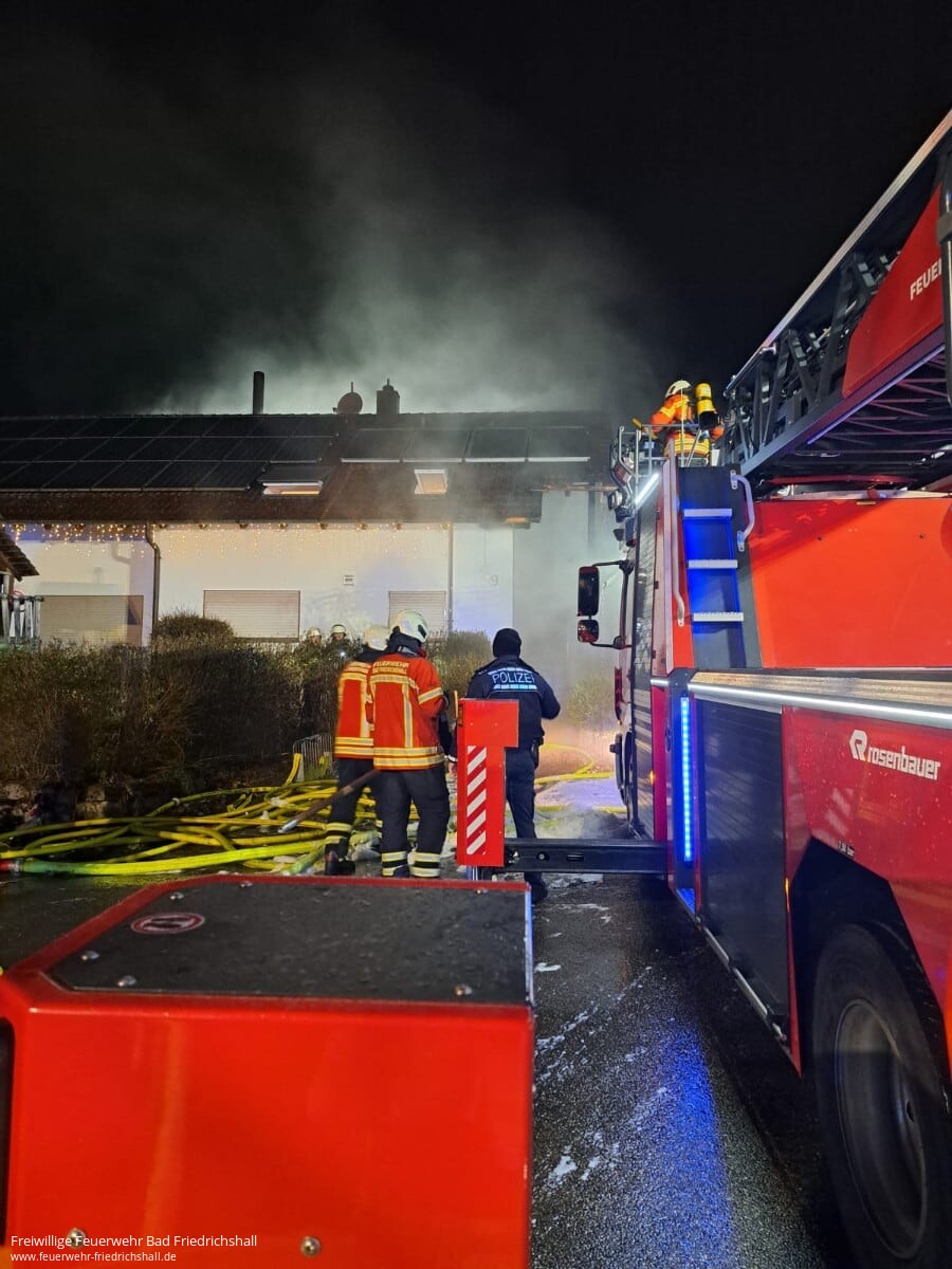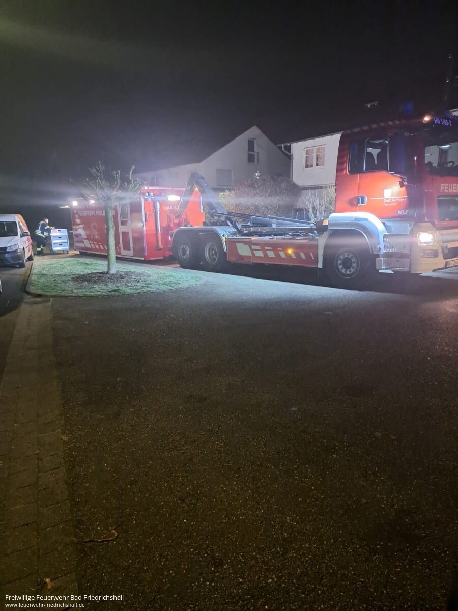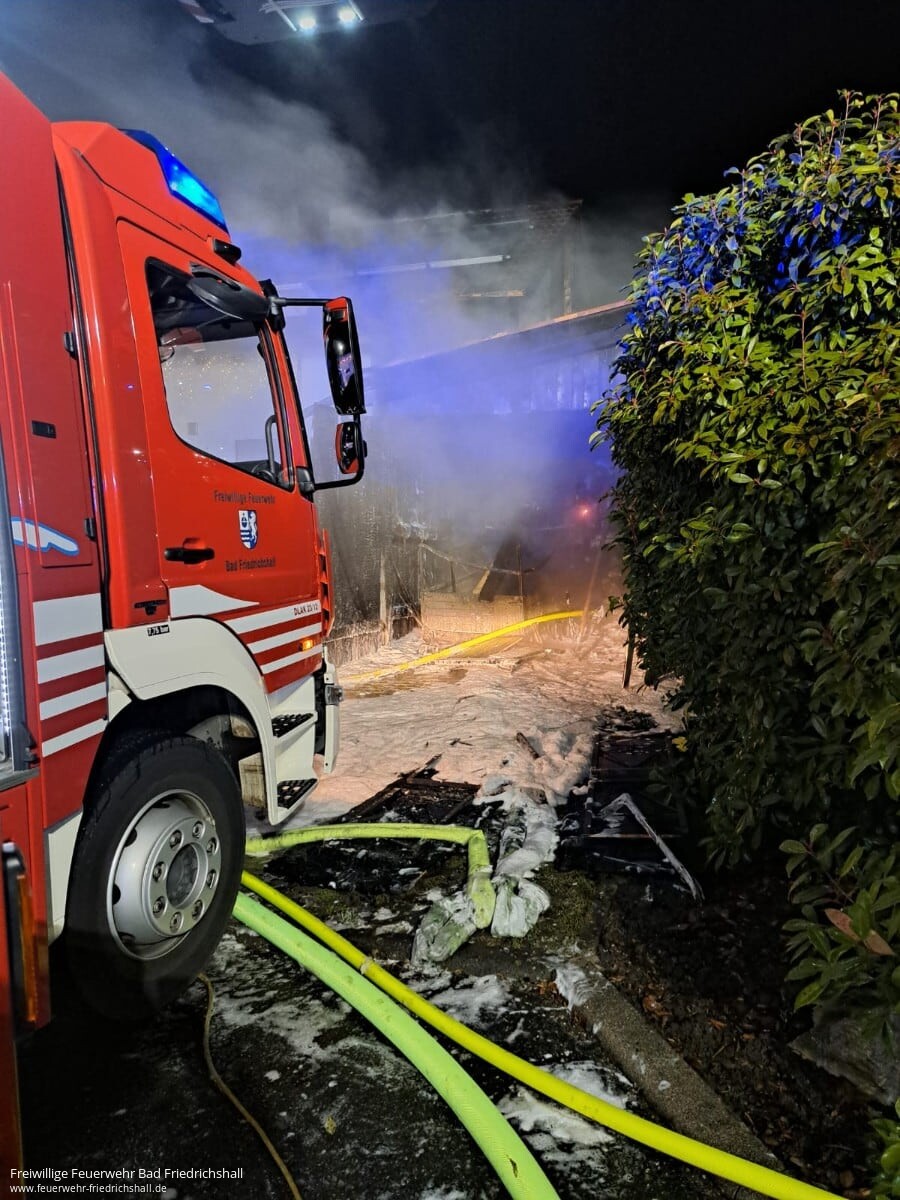 Um 19:41 Uhr wurde die Feuerwehr Bad Friedrichshall mit einem kompletten Löschzug von der Feuerwehr Oedheim zu einem Dachstuhlbrand alarmiert. Aus bislang ungeklärter Ursache kam es zu einem Brand in einem unmittelbar neben dem Wohnhaus stehenden Holzschuppen. Beim Eintreffen der Feuerwehr stand der Schuppen in Vollbrand und hatte bereits auf den Dachstuhl des Wohnhauses übergegriffen. Mit mehreren C-Rohren sowie dem Wenderohr der Drehleiter konnte eine Ausbreitung des Brandes auf den kompletten Dachstuhl verhindert werden. Im weiteren Verlauf des Einsatzes kam aufgrund brennbarer Flüssigkeiten ein Schaumrohr zum Einsatz. Mehrere Trupps unter Atemschutz kamen über eine Einsatzdauer von mehreren Stunden zum Einsatz. Glücklicherweise konnte die Familie rechtzeitig und unverletzt das Gebäude verlassen.