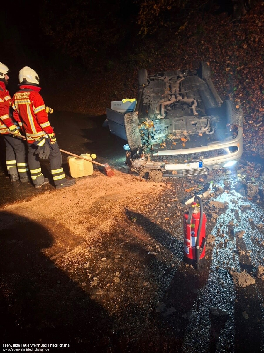 Um 16:51 Uhr wurde die Einsatzabteilung Bad Friedrichshall mit dem Stichwort „Auslaufende Betriebsmittel“ auf die K2116 alarmiert. Dort kam es im Kurvenbereich zu einem Zusammenstoß vo...