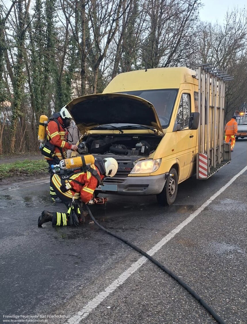Um 08:36 Uhr wurde die Einsatzabteilung Bad Friedrichshall mit dem Stichwort „PKW Brand“ auf die L1096 bei der Sprengelbachstraße alarmiert. Dort kam es im Motorraum an einem Sprinter ...