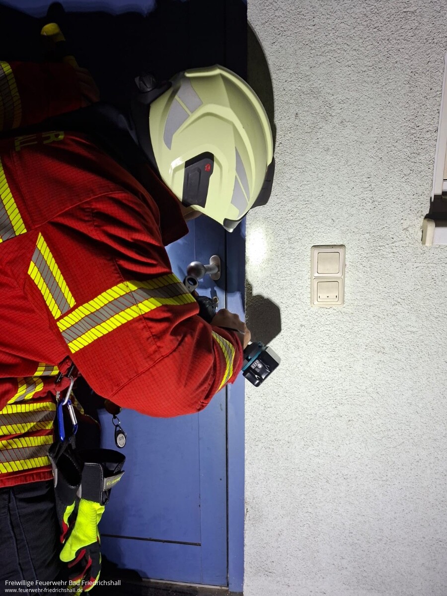 Um 18:37 Uhr wurde die Einsatzabteilung Bad Friedrichshall mit dem Stichwort „Türöffnung Notfall“ in den Stadtteil Plattenwald alarmiert. Die Polizei war bereits vor Ort. Ein Bewoh...