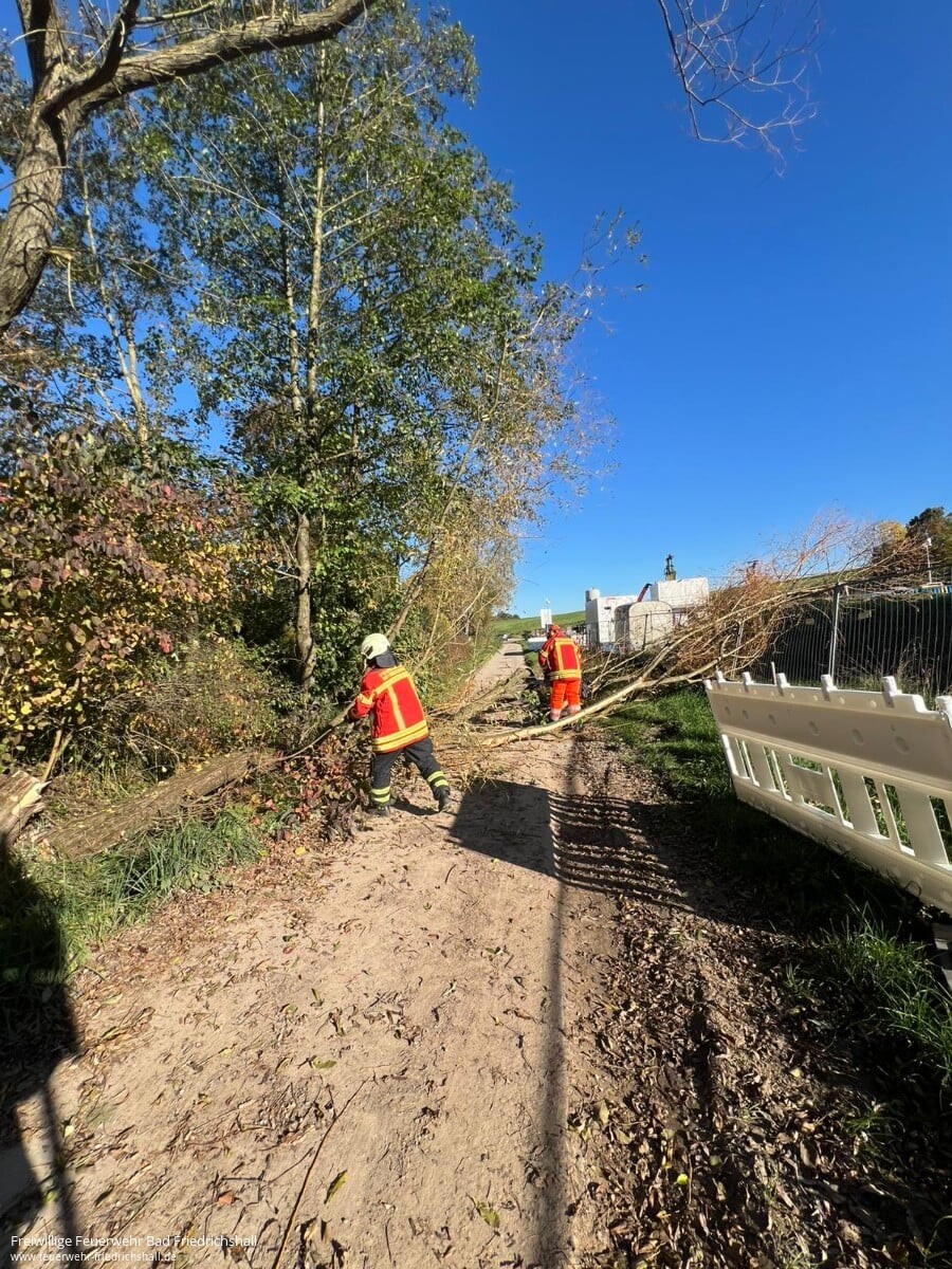Telefonisch wurde der Kommandant von der Leitstelle über einen umstürzenden Baum an einem Feldweg im Stadtteil Kochendorf verständigt. Ein LKW war ordnungswidrig in die falsche Richtung von einer Baustelle abgefahren und hatte einen zu engen Feldweg für seine Abfahrt benutzt. Dabei blieb der LKW an einem Baum hängen, dieser drohte danach auf einen Feldweg umzustürzen. Mittels einer Motorkettensäge konnte die Besatzung des Rüstwagens den Baum fällen und zerkleinert am Wegrand lagern und somit eine Unfallgefahr verhindern.