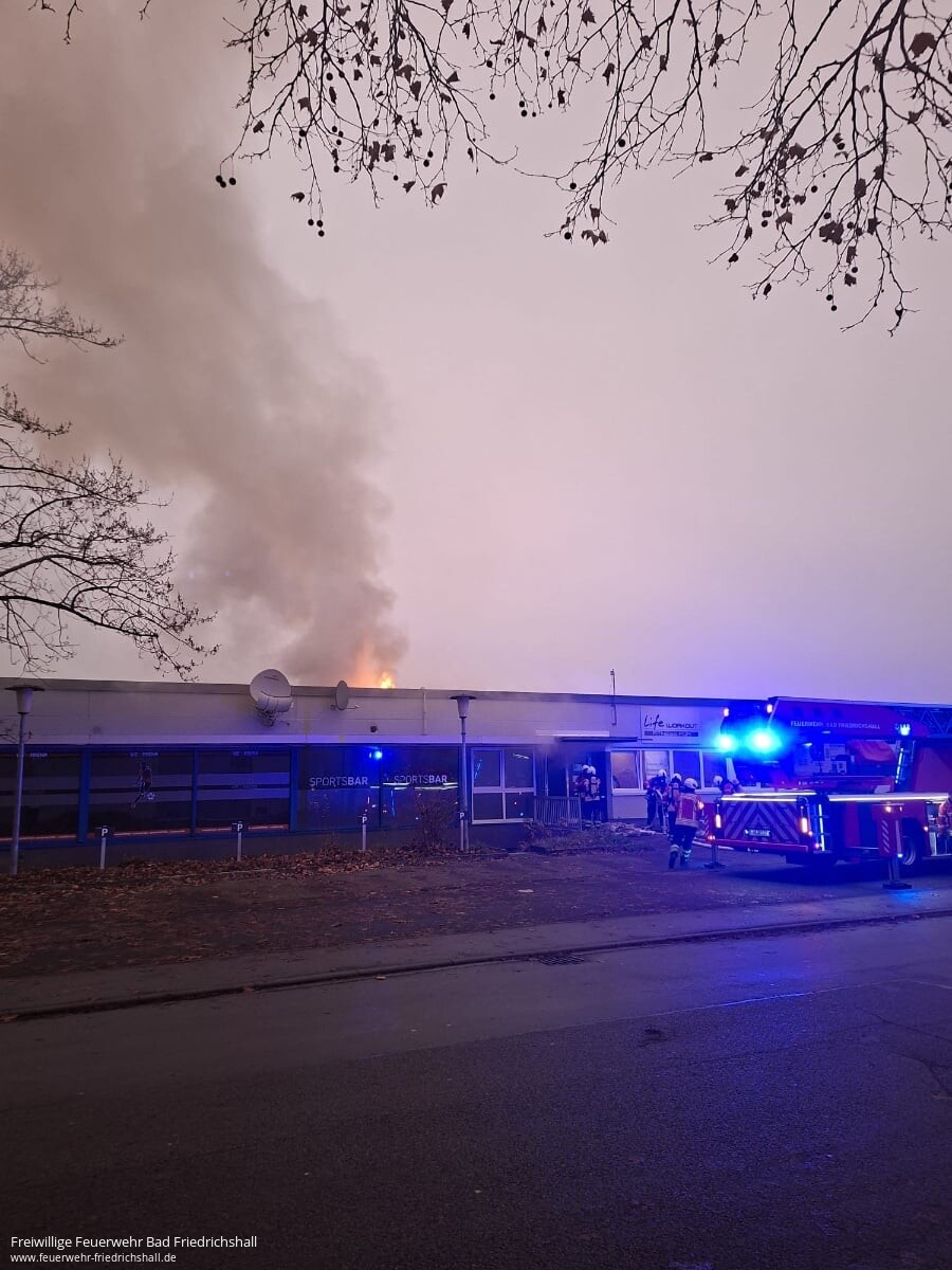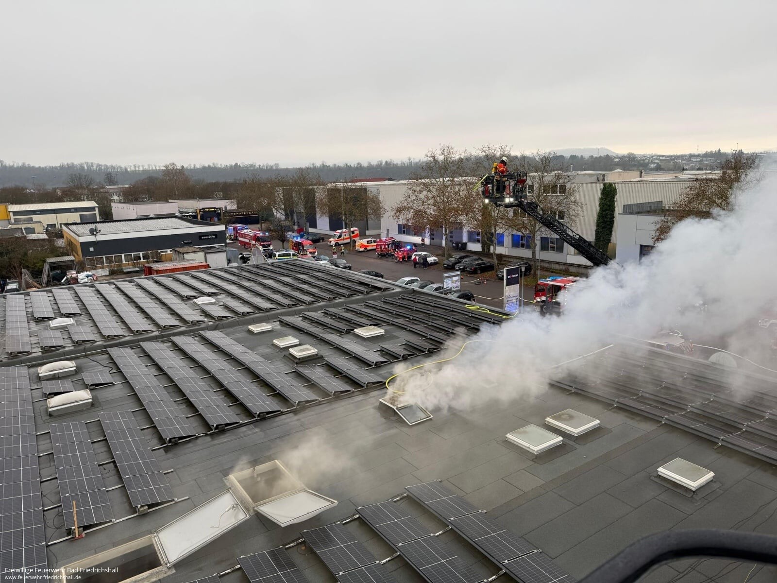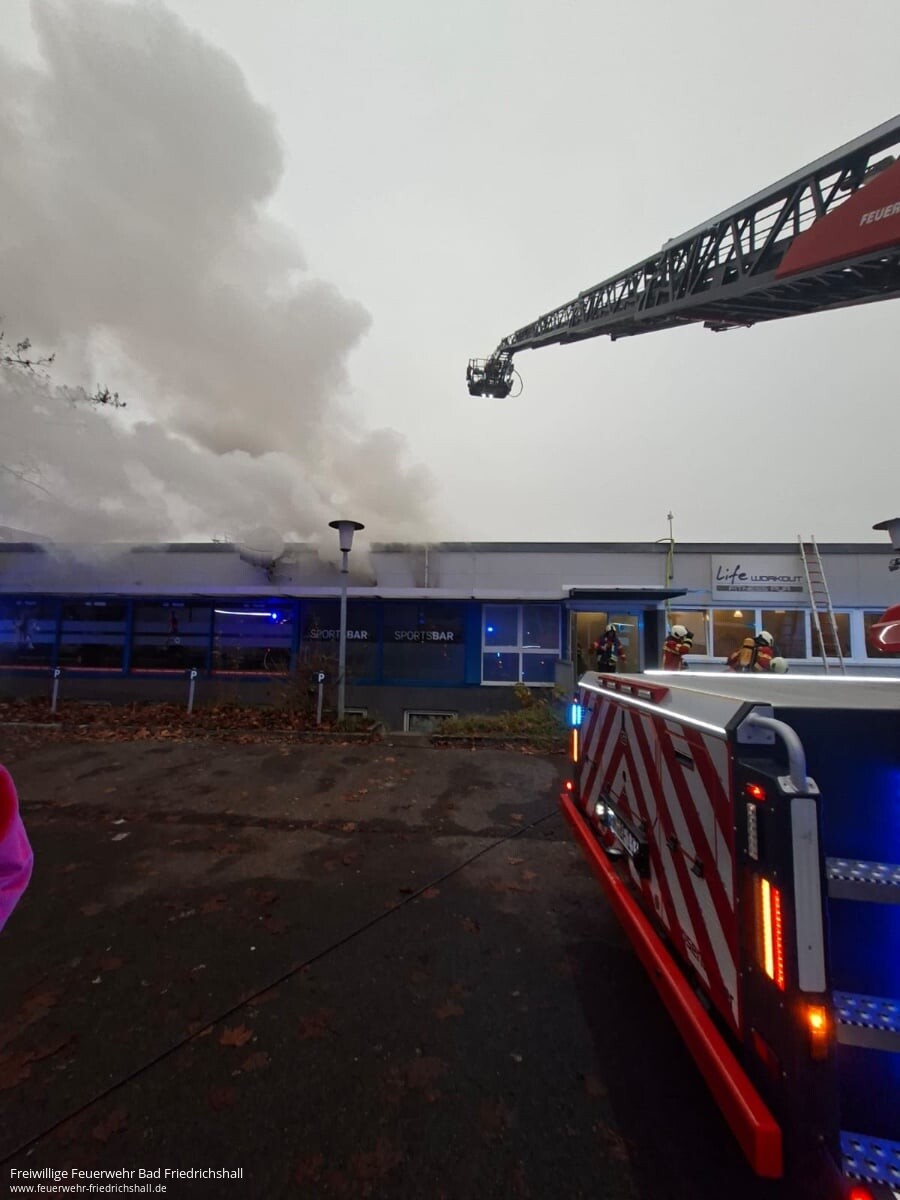 Beim Eintreffen des Einsatzleiters war ein eingeschossiger Industrieflachdachbau in dem ein 24 h geöffnetes Fitness Studio sowie eine Sportbar untergebracht ist, auf einer Fläche von rund 1000 m² komplett verraucht. Auf dem Flachdach waren Feuerschein und eine massive Rauchentwicklung sichtbar. Nachdem in der Anfangsphase nicht bekannt war ob sich noch Personen im Gebäude befanden, wurden umgehend Trupps unter Atemschutz zur Menschenrettung und Brandbekämpfung ins Gebäude gebracht. Glücklicherweise konnten keine Personen im Gebäude aufgefunden werden.