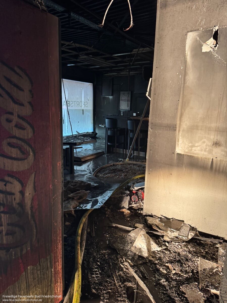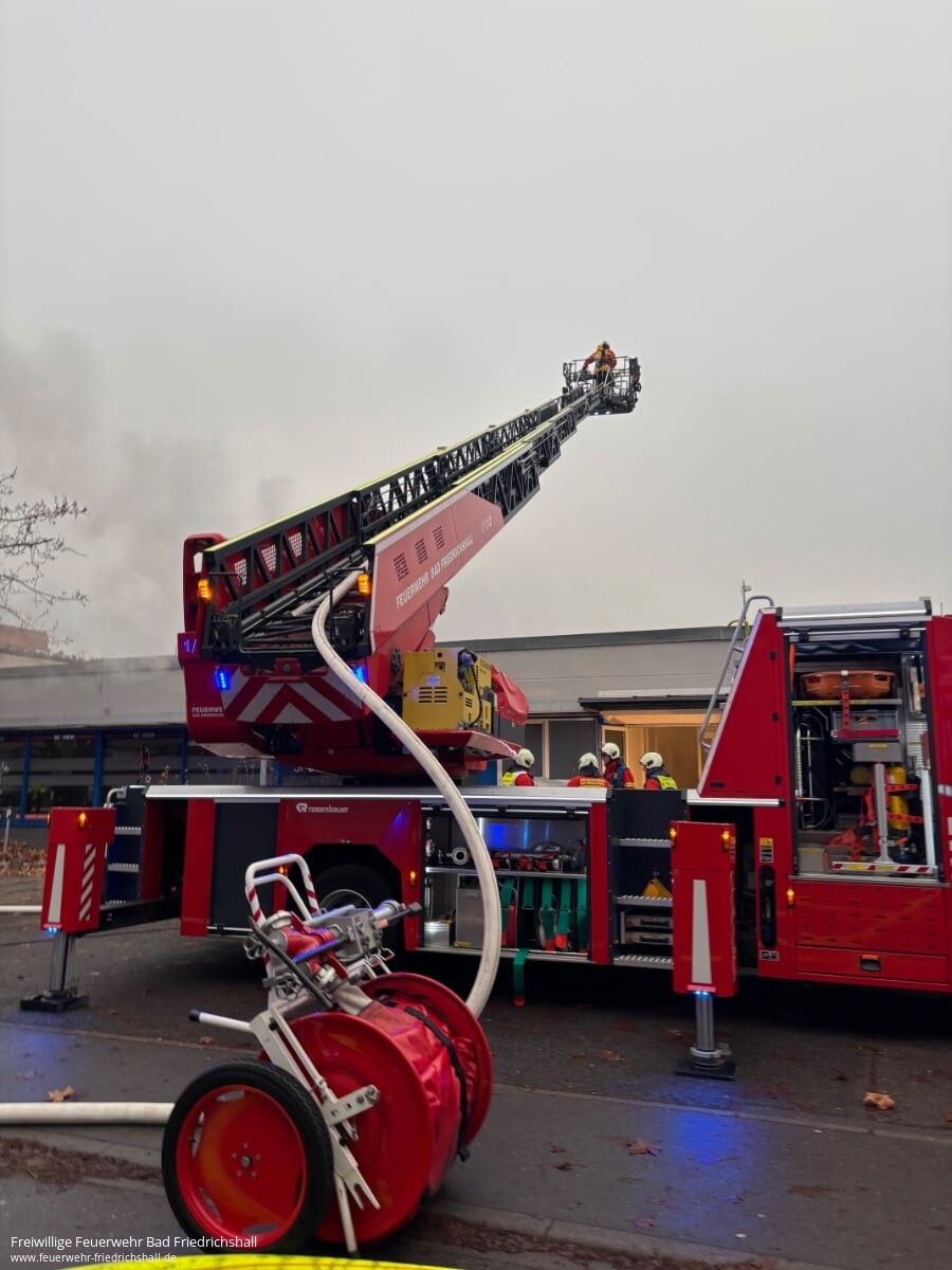 Im angrenzenden Bereich an den Brandraum sind eine Kaffeerösterei sowie eine Autowerkstatt untergebracht. Der Gebäudekomplex verfügt über keinerlei baulichen Rauch- und Brandabschnitte, was letztlich mit zu einer Ausbreitung des Rauches führte. Das Dach ist durchgängig mit einem Metalltrapezblech sowie einer Styropordämmung ausgebaut, welche ebenfalls in Brand geraten war und sich dadurch der Brand unkontrolliert ausbreiten konnte. Es wurde ein zweiter Einsatzabschnitt gebildet und diesem der Halbzug Neckarsulm zugeteilt. Beide Einsatzabschnitte wurden jeweils mit einem ELW 1 geführt und arbeiteten der Technischen Einsatzleitung, welche der ELW 2 übernommen hatte, zu. Unter großem Kräfteeinsatz und mittels Rettungssägen mussten die Decken sowohl vom Gebäudeinneren wie auch auf dem Dach geöffnet werden. Insgesamt kamen 7 C-Rohre, ein Wenderohr sowie 30 Trupps unter Atemschutz zum Einsatz. Aufgrund der starken Rauchentwicklung erfolgte eine Warnung der Bevölkerung über die WarnApp Nina, parallel hierzu wurden durch den Gerätewagen Messtechnik an der Einsatzstelle aber auch im Stadtgebiet Bad Friedrichshall Schadstoffmessung durchgeführt. Alles Messungen waren negativ, so dass eine Gefahr für die Bevölkerung bestand.