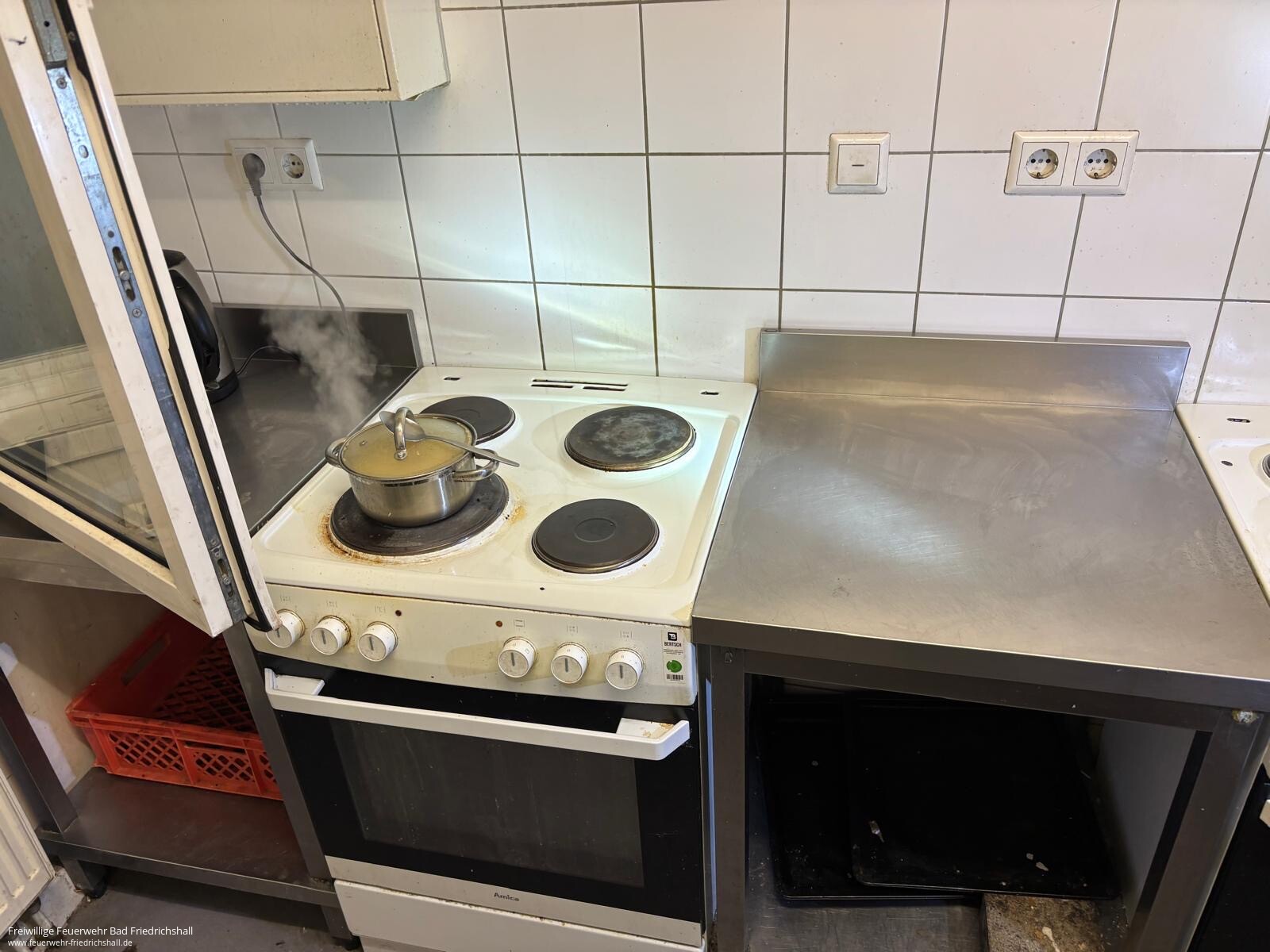 Nach dem Eintreffen an der Einsatzstelle und der durchgeführten Erkundung stellte sich heraus, dass die Brandmeldeanlage durch angebranntes Essen auf einem Herd ausgelöst worden war.