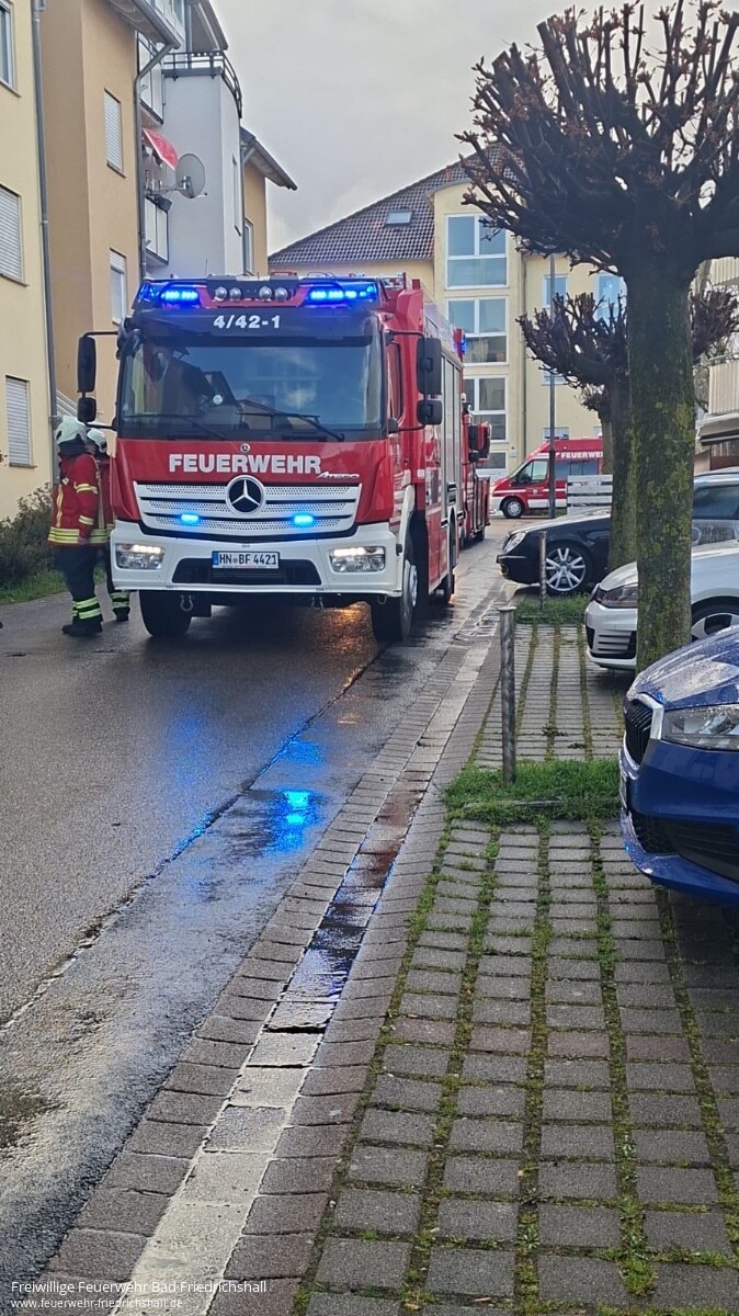 Um 09:31 Uhr wurde die Einsatzabteilung Bad Friedrichshall mit dem Stichwort „Rauchentwicklung Wohngebäude“ in den Stadtteil Plattenwald alarmiert. Bewohner eines Mehrfamilienhauses meldeten einen Schmorgeruch im Keller des Gebäudes. Von der Feuerwehr wurden Kellerräume geöffnet und mittels mehreren Wärmebildkameras und Messgeräten kontrolliert. Es konnte kein Schmorbrand festgestellt werden. Vermutlich war Müll die Ursache für den undefinierbaren Geruch. Ein weiterer Einsatz der Feuerwehr wurde daher nicht erforderlich.
