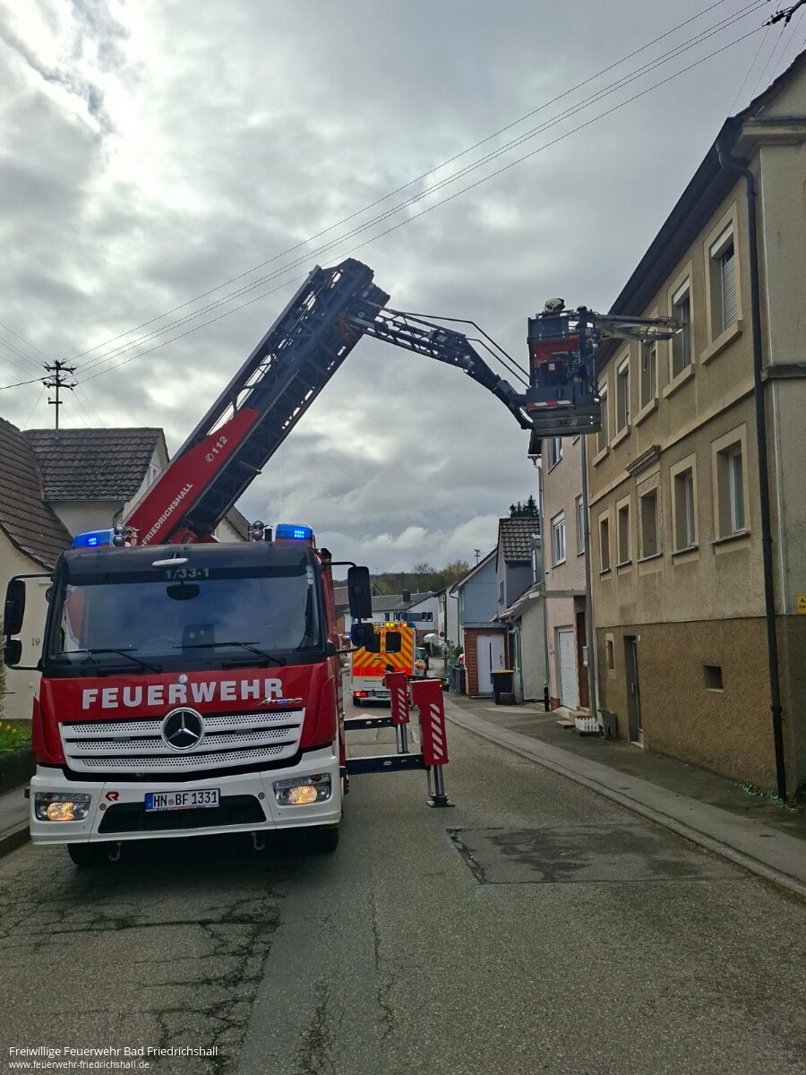 Um 9:48 Uhr wurden die Feuerwehren Gundelsheim und Bad Friedrichshall mit dem Stichwort „Hilfeleistung für den Rettungsdienst mit der Drehleiter“ in den Gundelsheimer Ortsteil Tiefenbach alarmiert. Aufgrund des sehr engen Treppenhauses wurde eine erkrankte Person schonend über die Korbtrage der Drehleiter aus dem 1. Obergeschoss gerettet. Dank sehr guter Zusammenarbeit beider Feuerwehren und des Rettungsdienstes konnte dies rasch erfolgen.