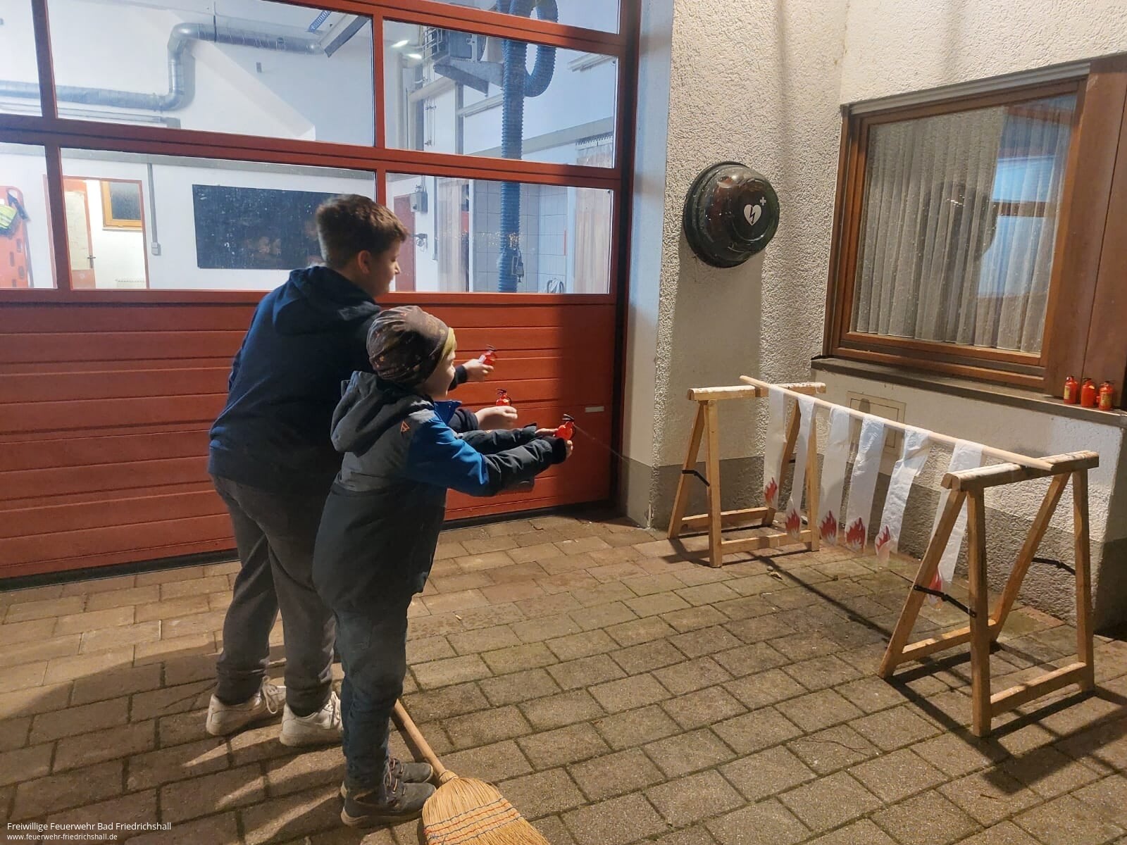 Am vergangenen Freitag trafen sich einige Kinder der Kindergruppe zu einem besonderen Übungsdienst – einer Übernachtung im Gerätehaus. Zu Beginn bezogen alle ihre Schlafplätze für die Nacht, bevor sie sich auf den ersten Programmpunkt stürzten. In Dreiergruppen ging es von Station zu Station, die von den Betreuern organisiert wurden. Die Kinder hatten viel Spaß beim Bobbycar fahren, Sackwerfen, Erbsen saugen, Flammen spritzen, Bausteinbauwerk nachbauen, Feuerwehrgeräten erraten und beim aufregenden Schlauchkegeln.