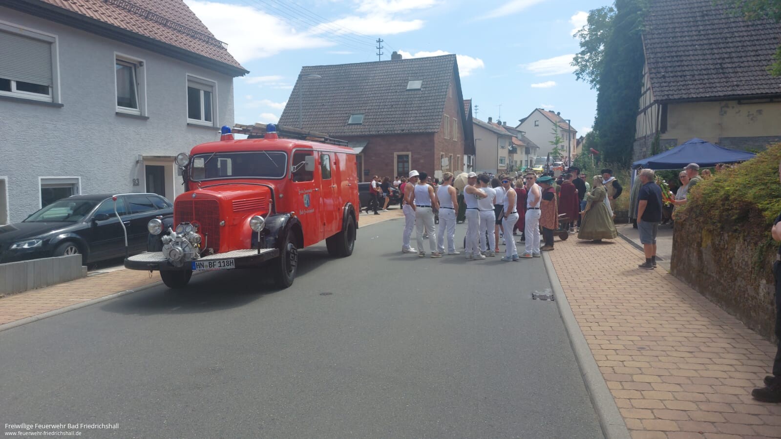 Der Umzug wurde durch unseren Oldtimer, dem LF-V 15, angeführt und unsere Drehleiter, DL 25, sicherte als Schlussfahrzeug den Umzug.