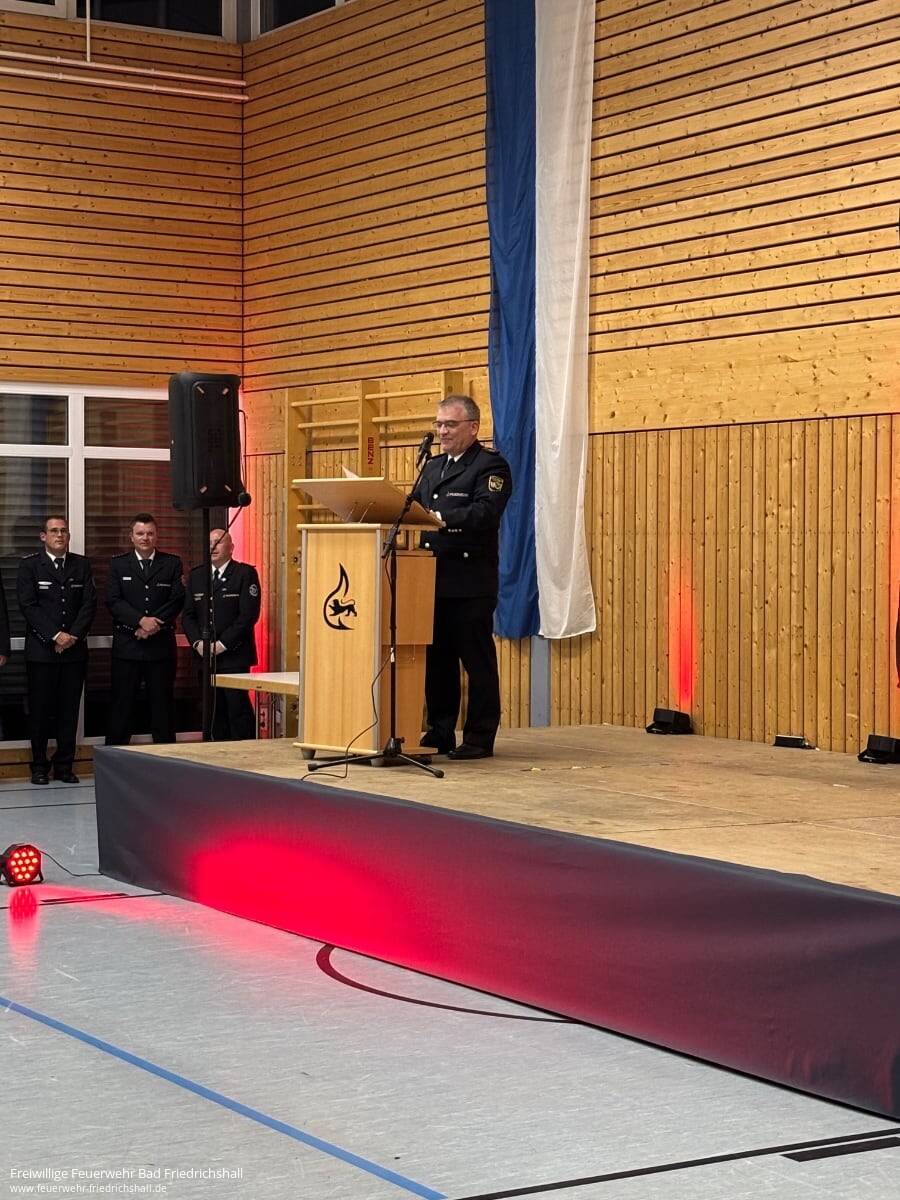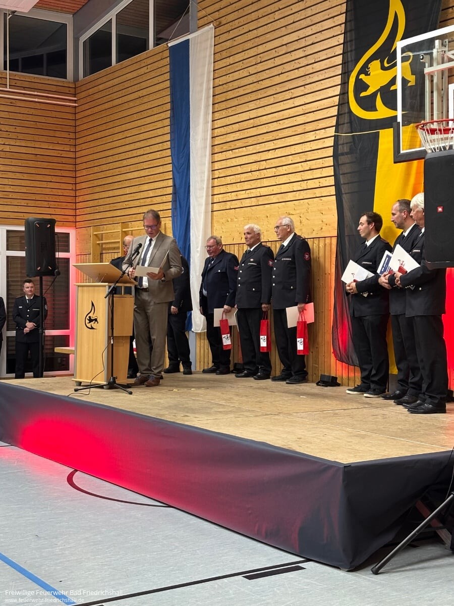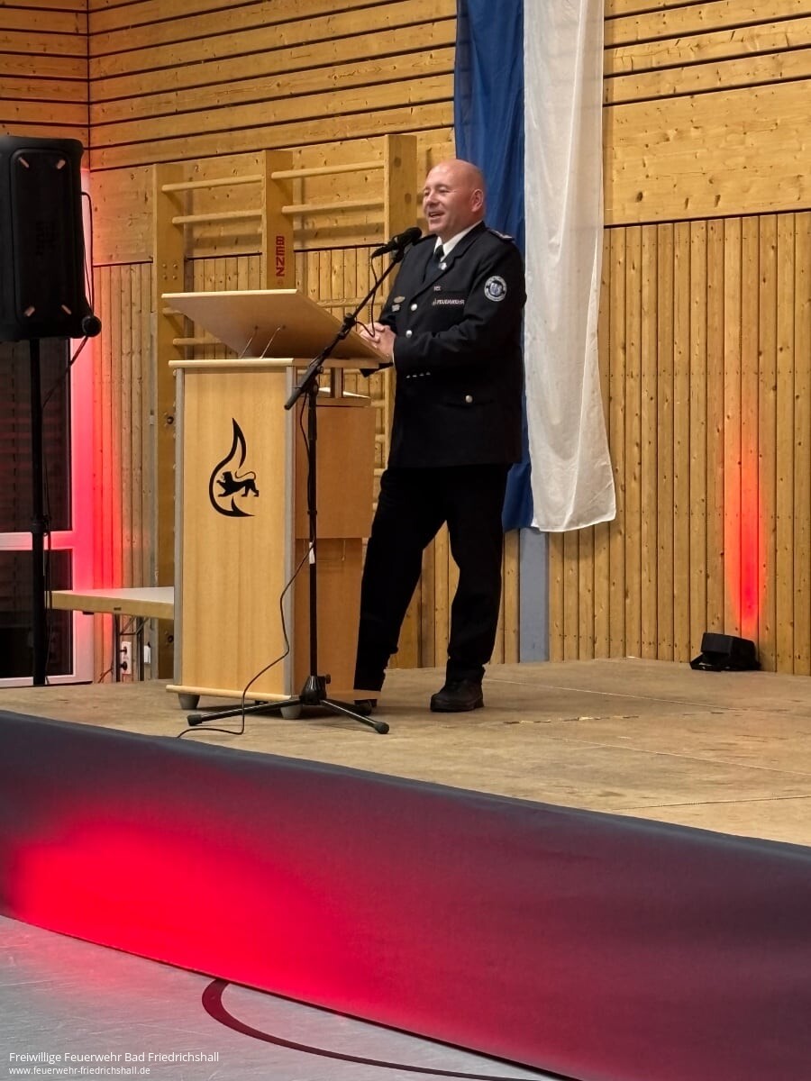 Am vergangenen Samstag hat die Feuerwehr Bad Friedrichshall zum traditionellen Kameradschaftsabend in die Seetalhalle eingeladen. Marcel Vogt, Kommandant der Feuerwehr, blickte in seiner Ansprache auf das vergangene Jahr zurück und betonte die Bedeutung des Zusammenhalts innerhalb der Wehr. Zugleich dankte er den Partnerinnen und Partnern der Feuerwehrangehörigen für ihr Verständnis und ihre Unterstützung – insbesondere angesichts der zeitintensiven Einsatzbereitschaft, die das Ehrenamt mit sich bringt.